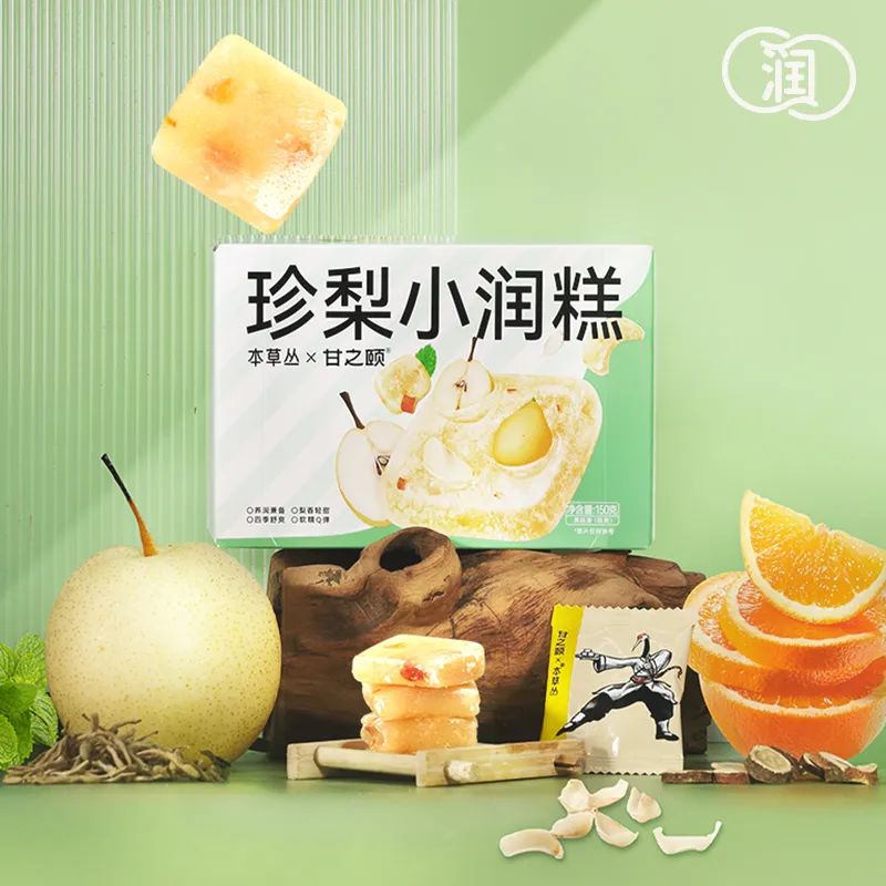 【润】每日吃2-3块珍梨小梨糕,滋阴润肺,深层补津液。