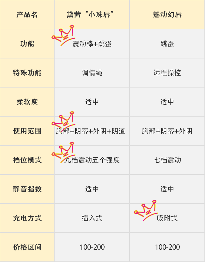 我按照产品介绍用前端锥形装饰试了一下,感觉不是很明显,但用整个链条在身体上拖动感受就相当撩人了……因为比较有震感的部分是接近主机的链条区域,到前端震感会弱一点。但也不排除有比较敏感的妹子会有反应,这个就靠大家自己开发玩法了。两款产品原价相同,所以就看你是需要遥控功能多一点,还是入体功能多一点。如果经常异地,或者对于入体类玩具没什么需求,那有远程遥控功能的「幻唇」就更合适。如果是经常自己玩,或者伴侣就在同城也经常能见面,那「黛茜“小珠唇”」就是更好的选择了。而且说真的,入体+突点的设计真的能“G”发出无限可能……