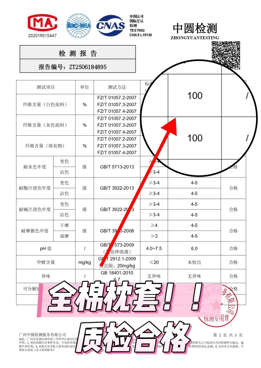 这款笙观相沐枕头标签资质、检测报告更是齐全!