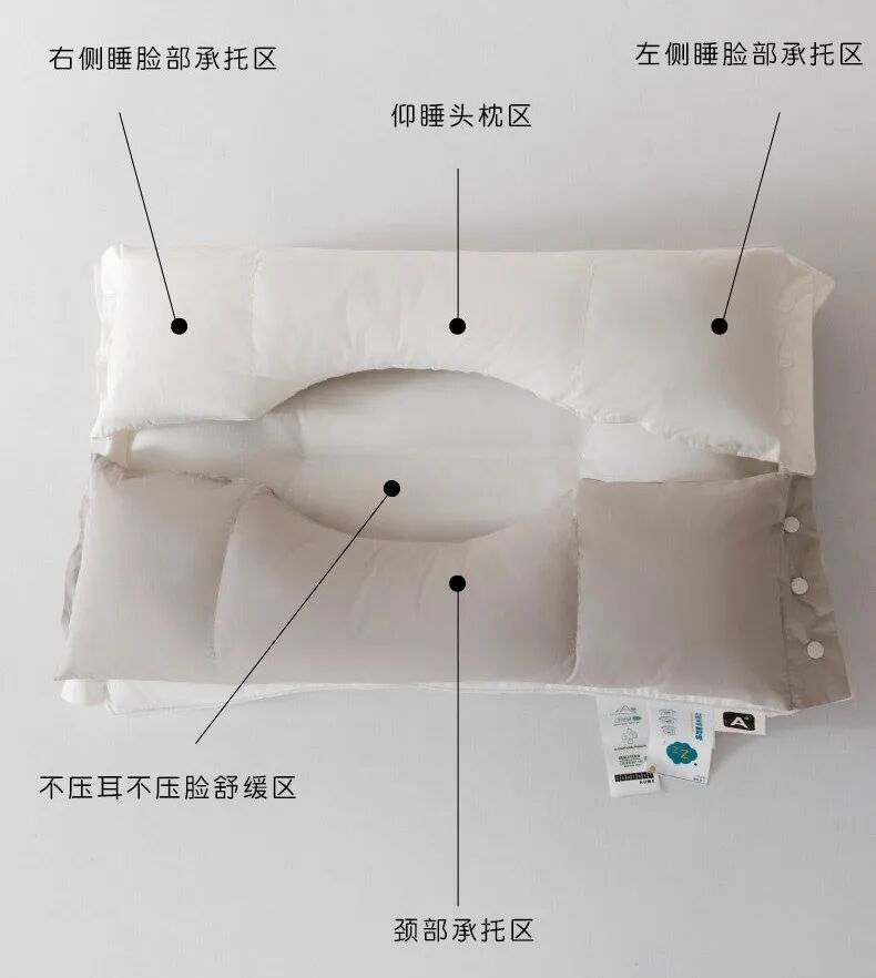两侧挖空凹槽容纳颧骨和耳朵,侧躺一夜耳朵不麻、脸上无压痕