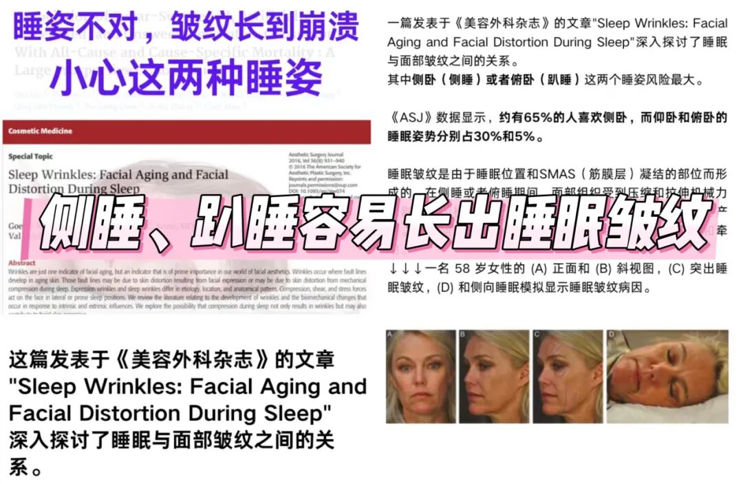 长期侧睡挤压会导致面部胶原蛋白流失加速,形成不可逆的 “睡眠纹”,再贵的抗皱精华都功亏一篑。