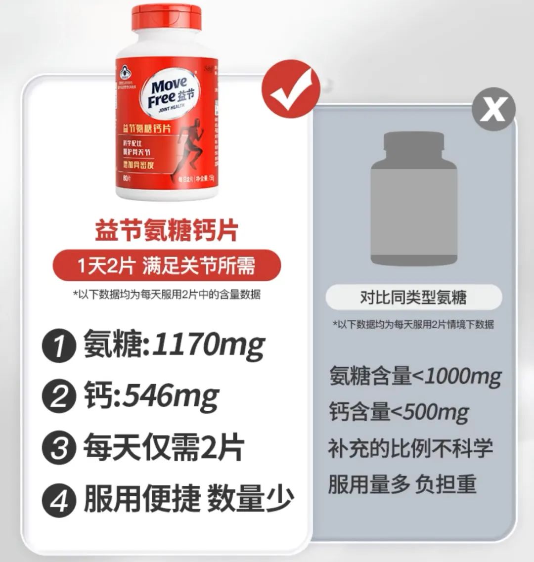 今天冯站长精选给大家推荐这个Move Free益节氨糖钙片,平时关节胀痛、膝盖不舒服、走路容易打颤、蹲起困难、尤其是40岁以上关节就吱嘎响,爬楼梯吃力、干点重活就腿脚酸痛一夜的,都适合买回去吃。