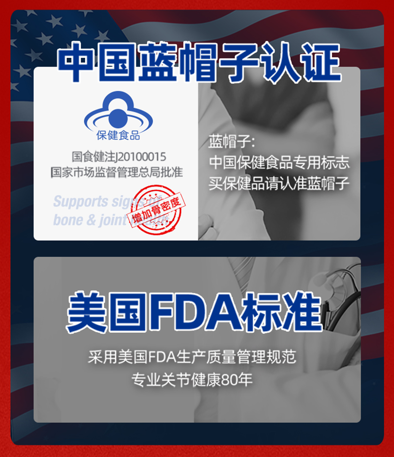这个钙片取得了双认证,既有适合国内的官方蓝帽认证,也有FDA国际认证,是100%美国原装进口,药房同款,大家可以放心买!
