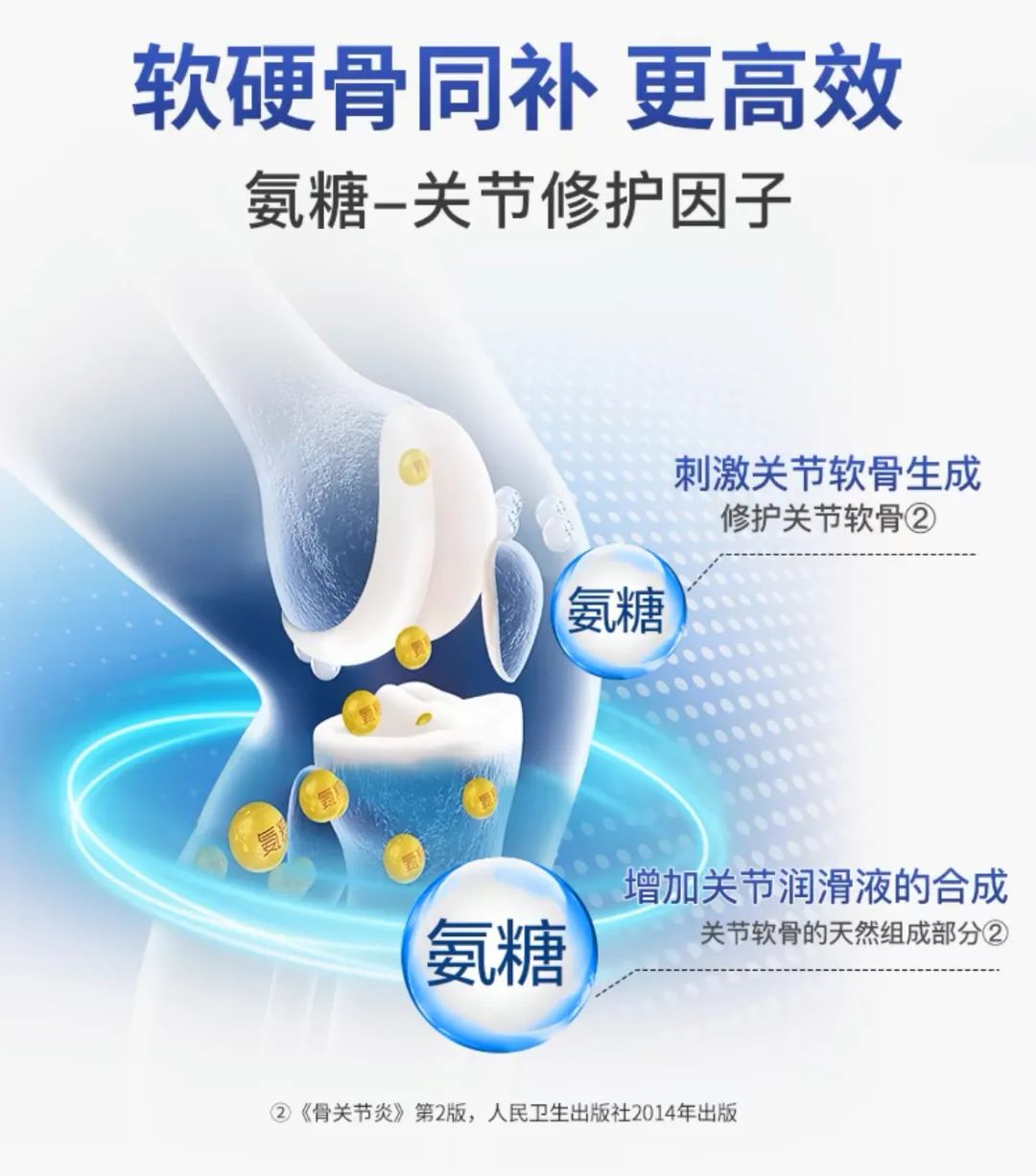所以说单单靠日常补钙已经不能满足身体的需求了,还需要补充能修护关节软骨的氨糖才行!