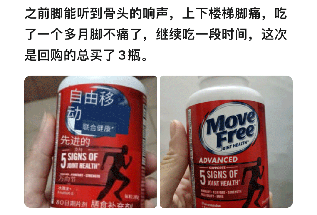 持续服用Move Free益节的氨糖软骨素钙片以后,关节确实是逐渐灵活起来了。