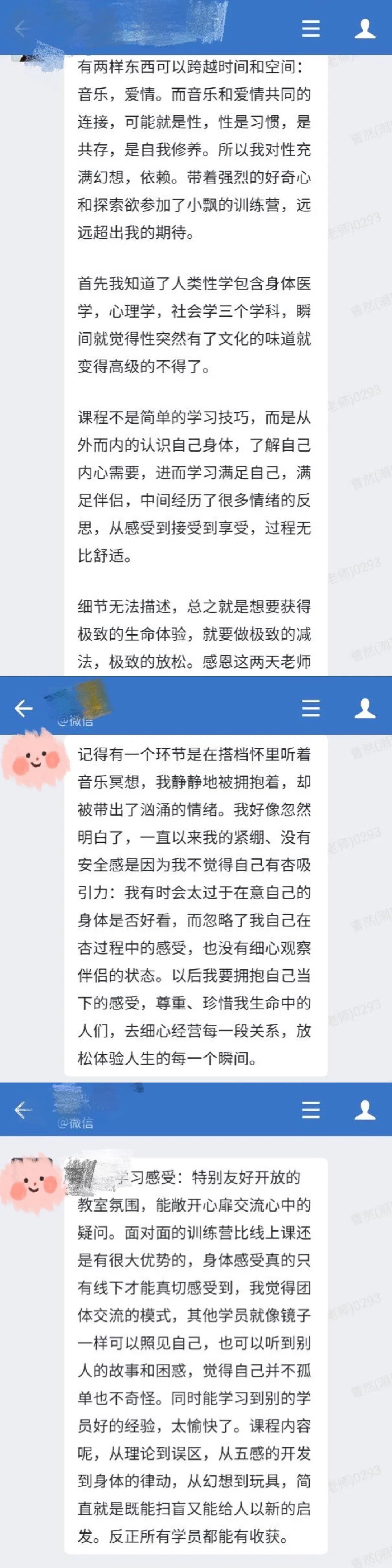 “小飘一开始以为你的课是偏向实操的,但是上过课之后我发现,你的课程其实更注重在女性本身,更注重心理上的成长。