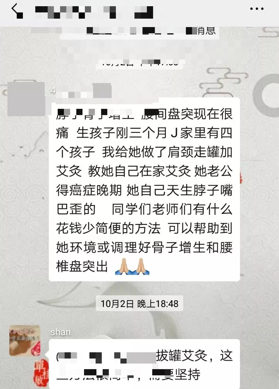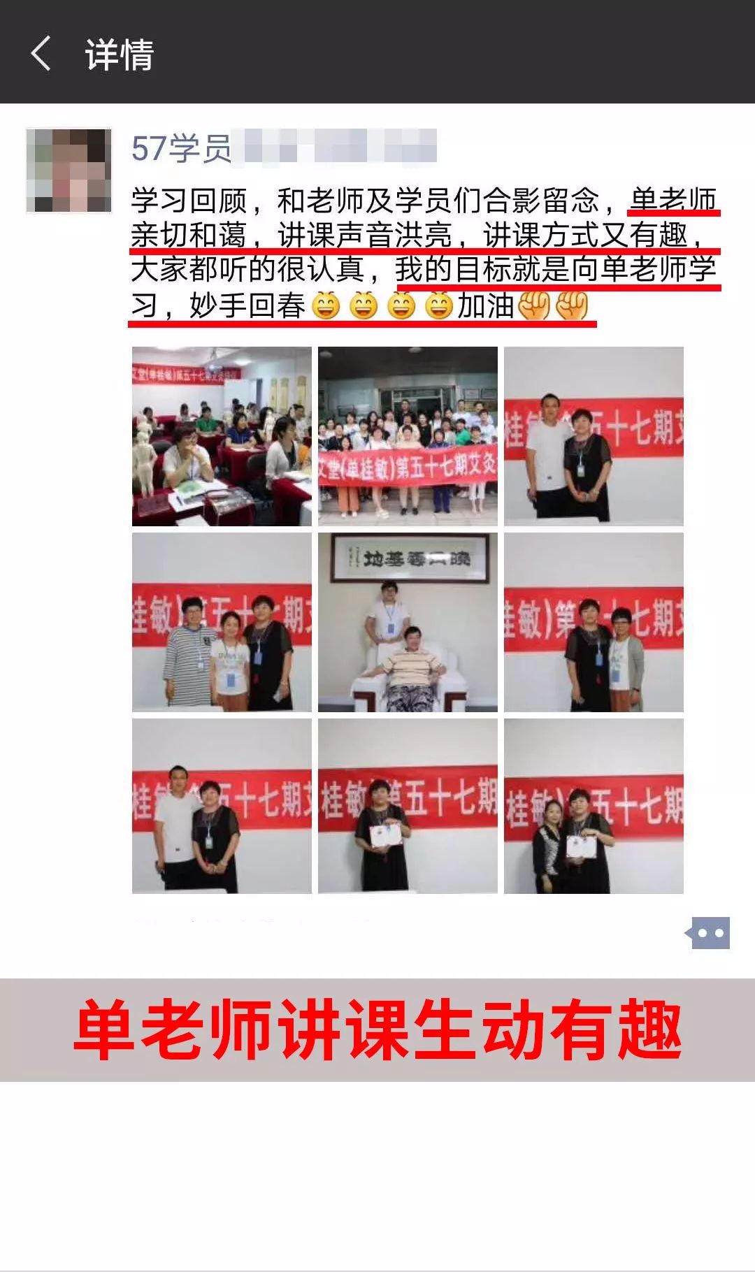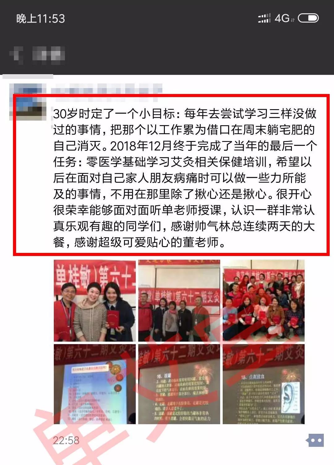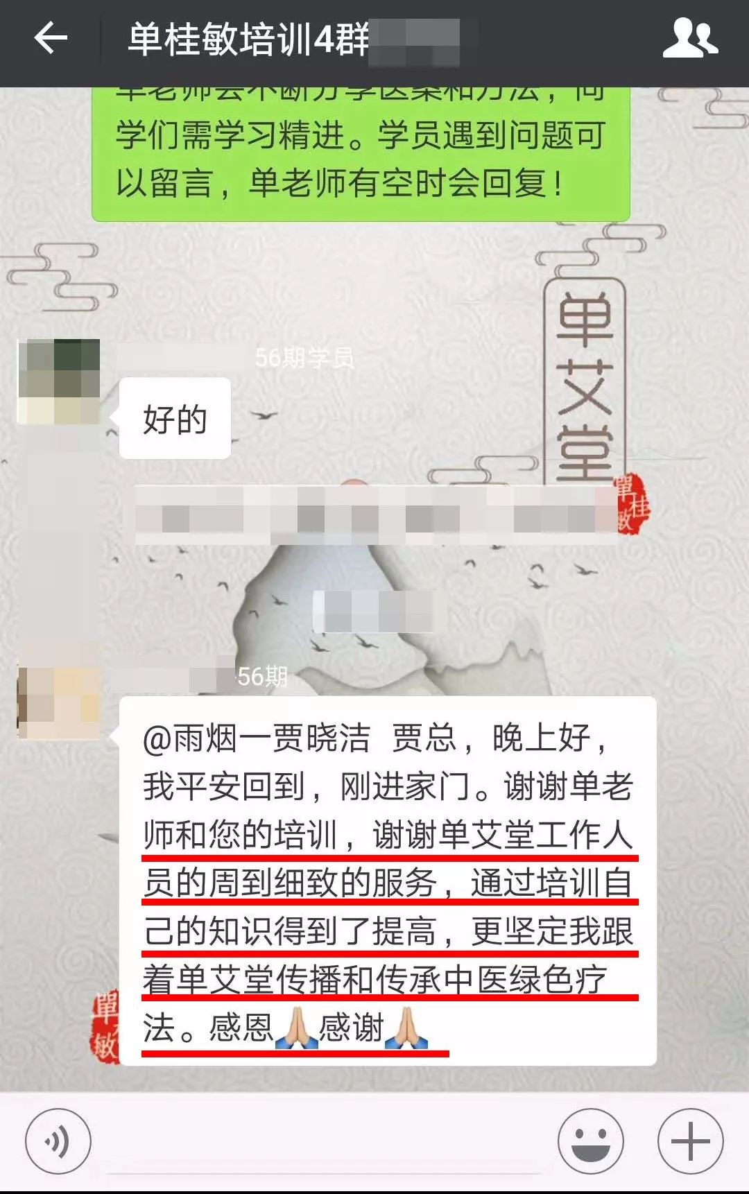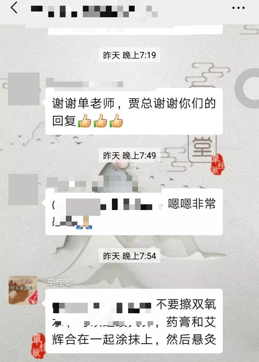 培训后,将所有学员拉进学员群。单老师在线为学员答疑解惑,解决实际问题。学员反馈有了很好的效果,家人、朋友,以及学员店里的顾客也一起受益,身体得到调理、改善。