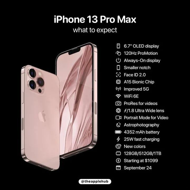 iPhone 13 Pro/Max的升级相对更大一些,主要是采用了三星 LTPO OLED 面板,支持120Hz刷新率与息屏显示。