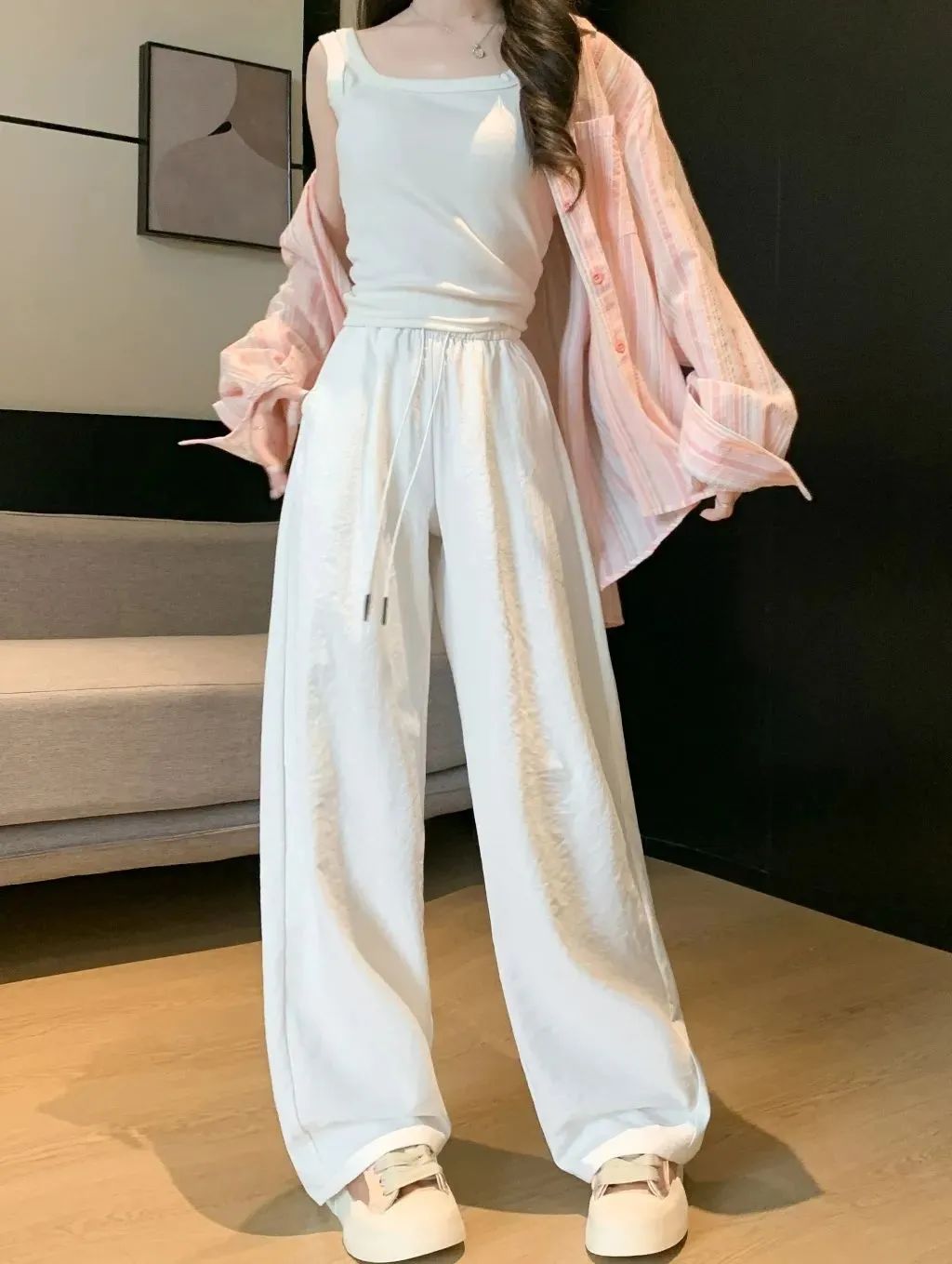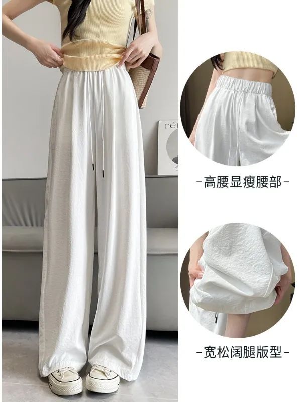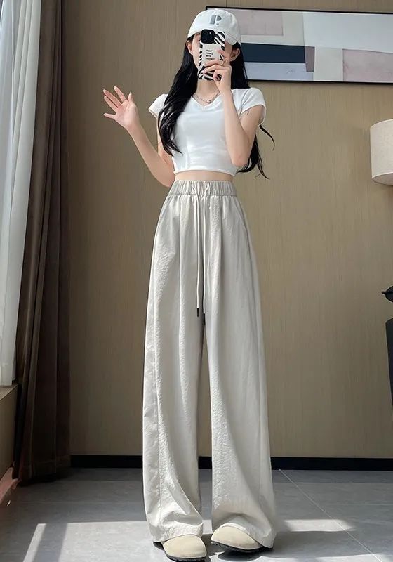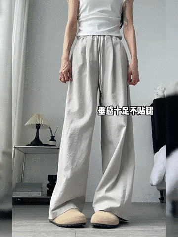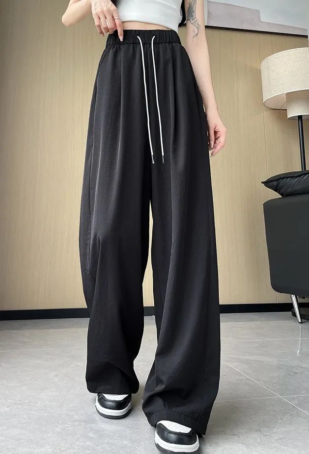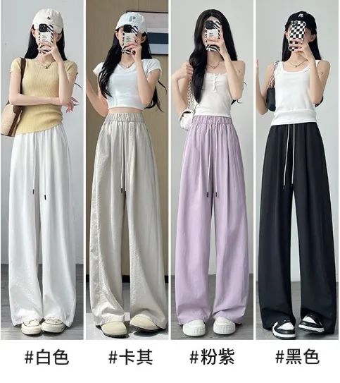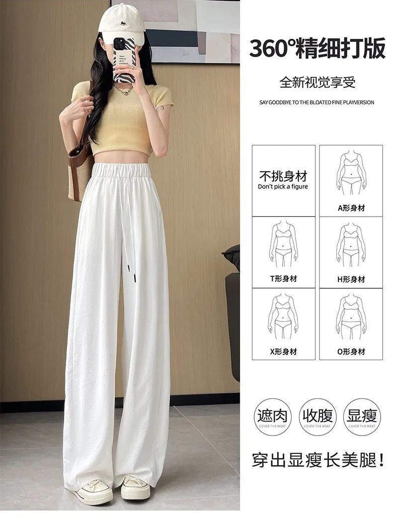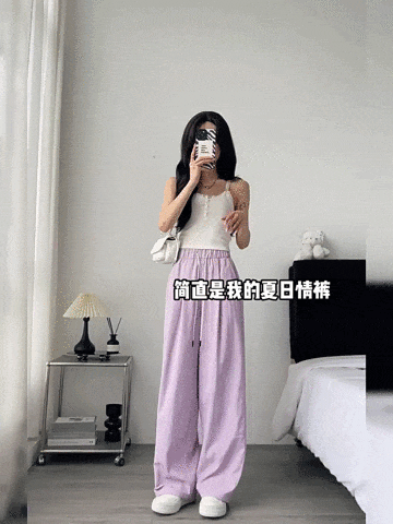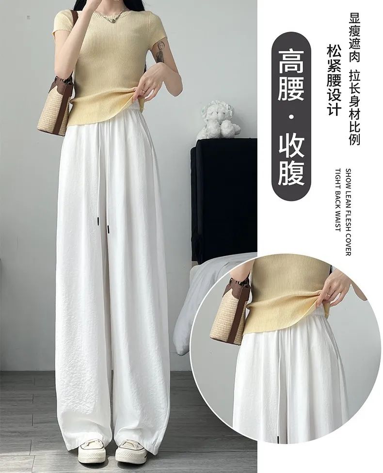 冰丝弯刀裤的高腰设计和宽松阔腿版型,简直是为各种身材量身定制的。