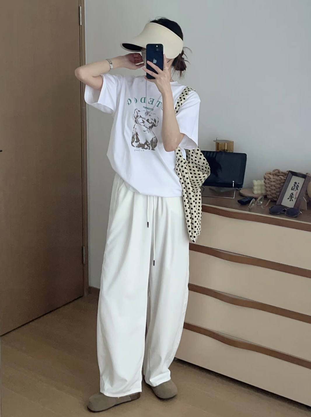 搭配简约的上衣和平底鞋,展现出随性自在的风格,适合日常逛街或周末出游。