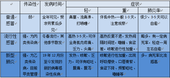 下面是感冒、流感和新型肺炎的症状区别,爸爸妈妈可以根据孩子的症状,大体判断一下: