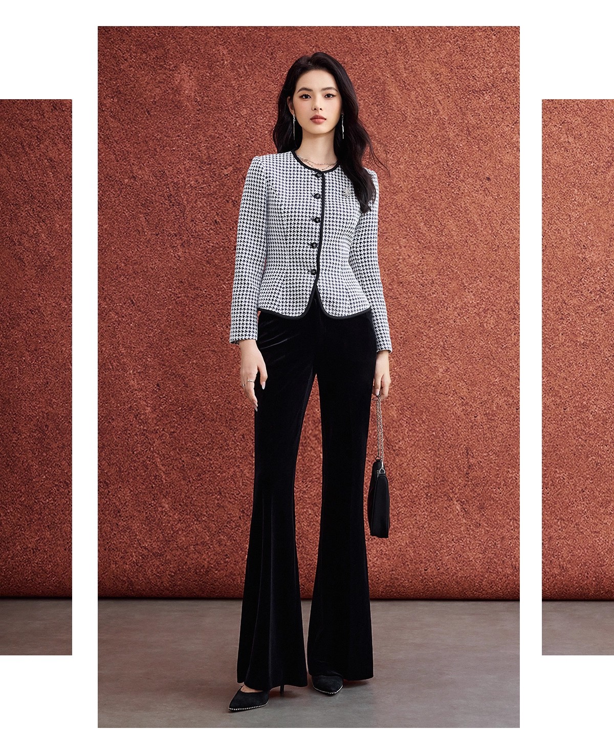 不管是闺蜜聚会还是烛光晚餐,这套穿搭都能让你在人群里「一眼出众」—— 既有西装的利落气场,又有丝绒的柔媚氛围,是自带故事感的约会战袍。