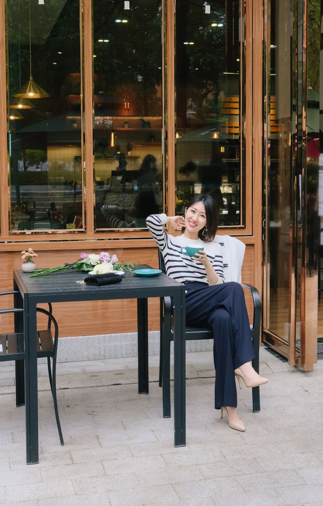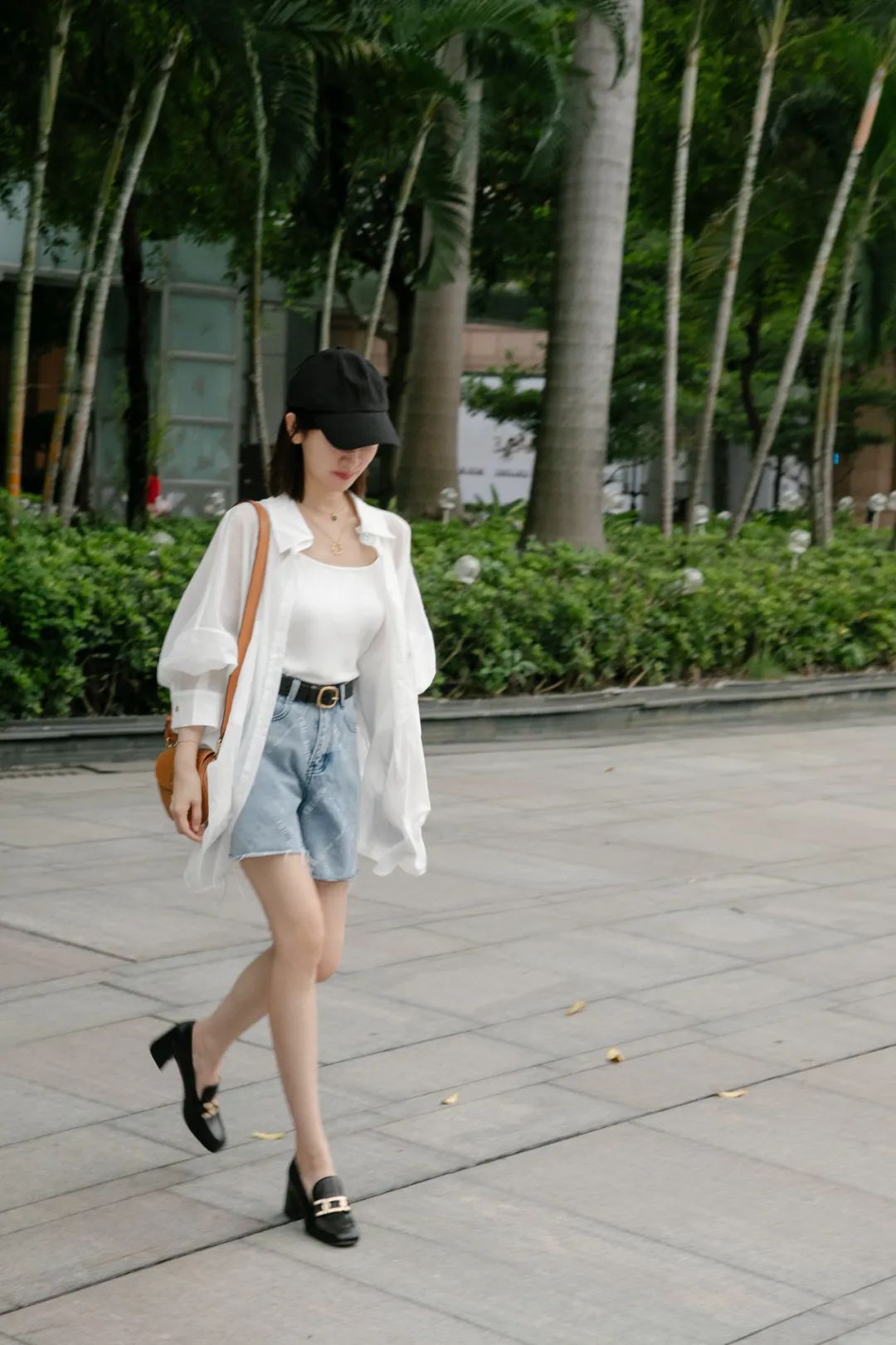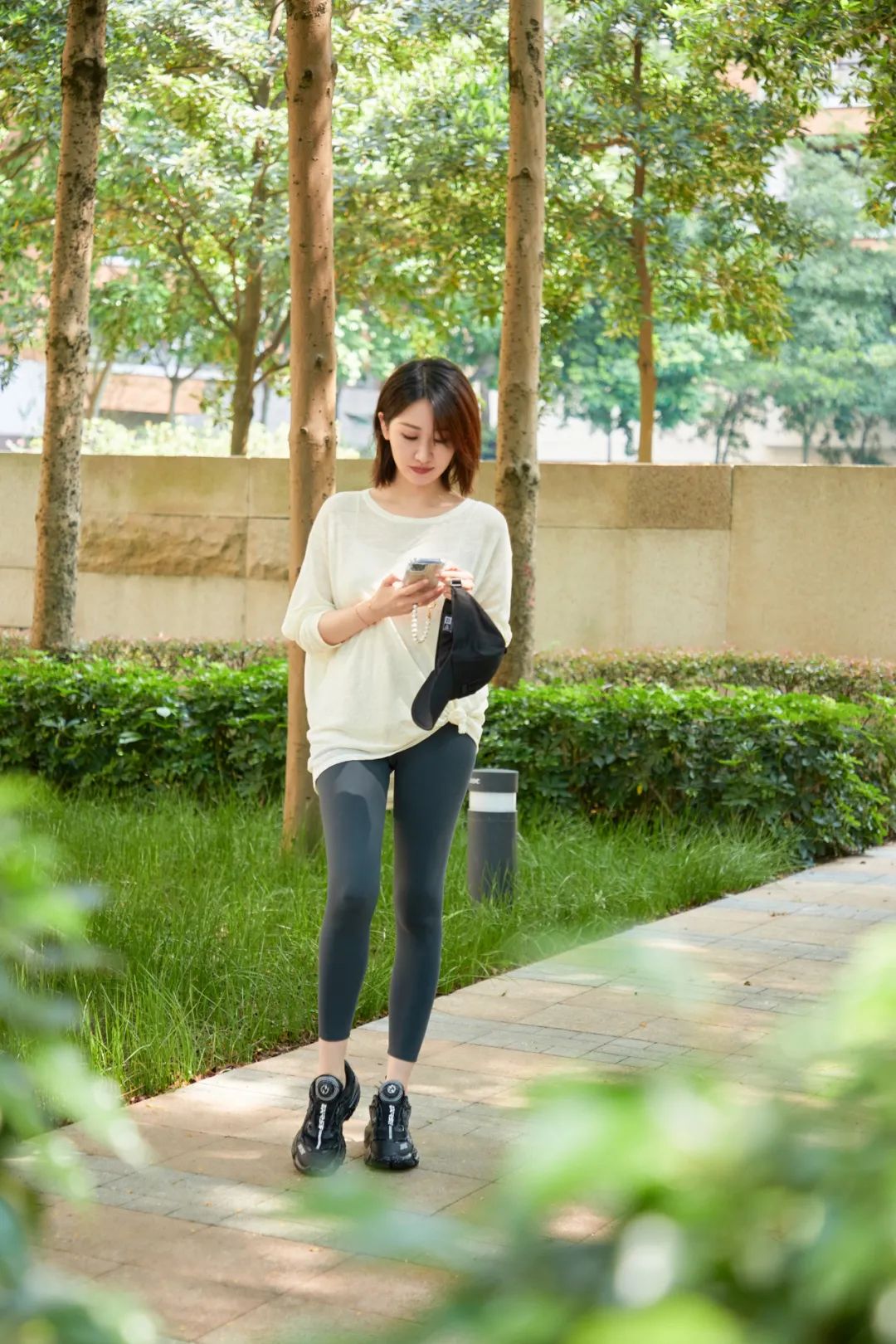 答案是:把高跟鞋换成了运动鞋,多了几分休闲气息。▼