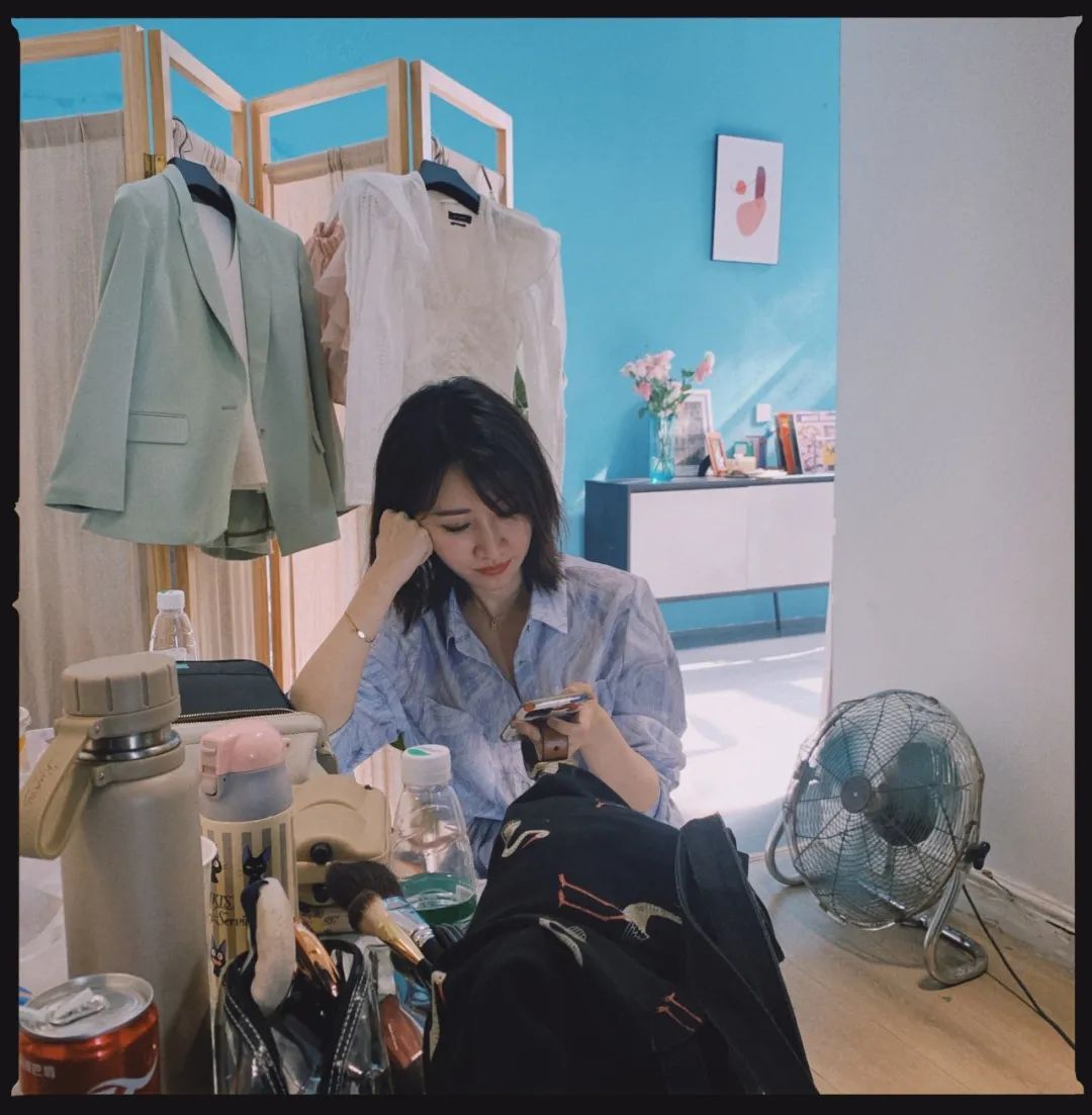 这张是小伙伴抓拍的花絮图,工作间隙的小确幸就是能坐下来,喝口水休息一下。▼