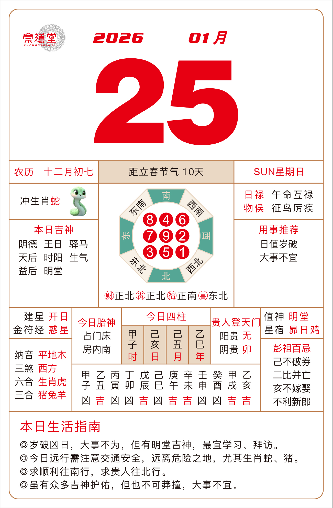 2026年1月28日 农历十二月初十 壬寅日 冲猴