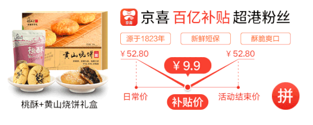 桃酥1袋+黄山烧饼礼盒,原价52.8元