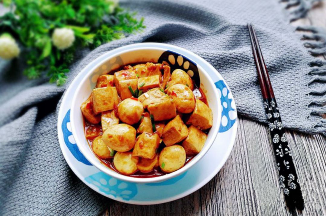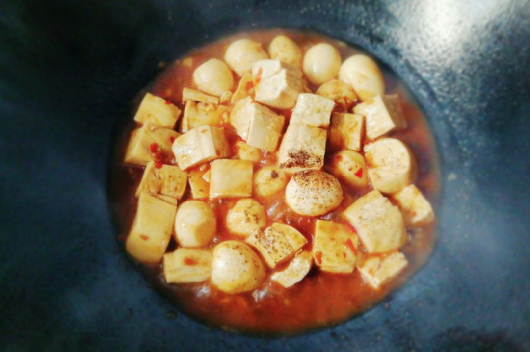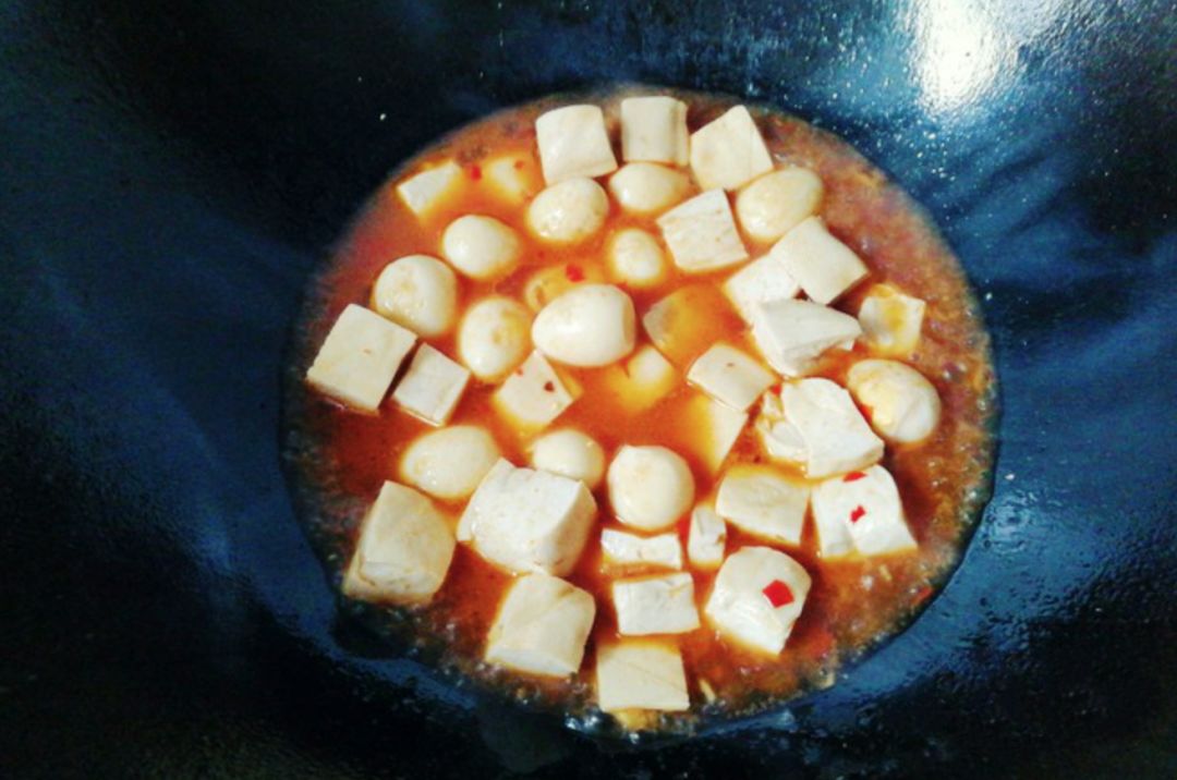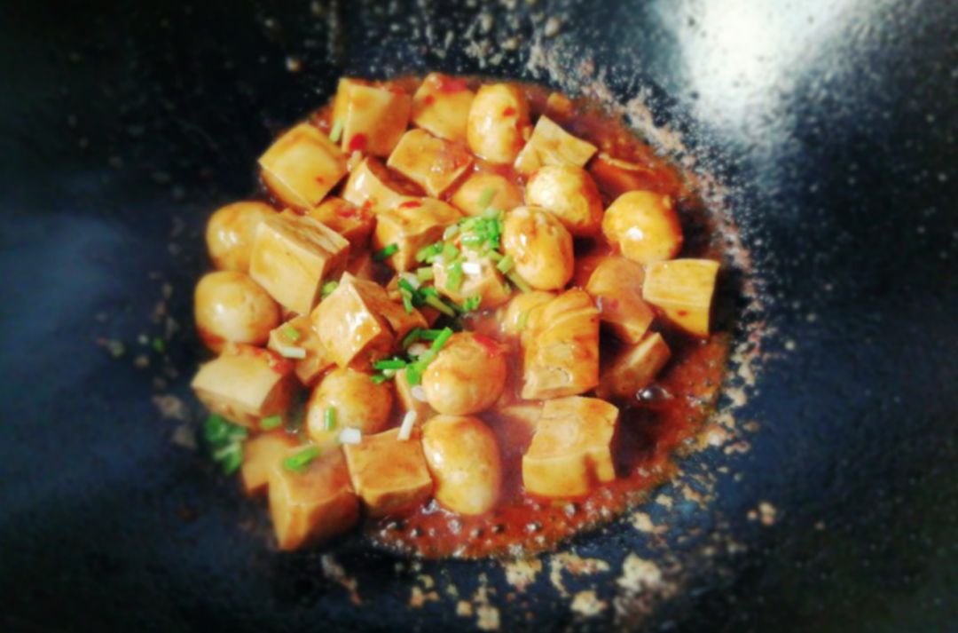今天分享一道“小而美”的菜肴:鹌鹑蛋烧豆腐!