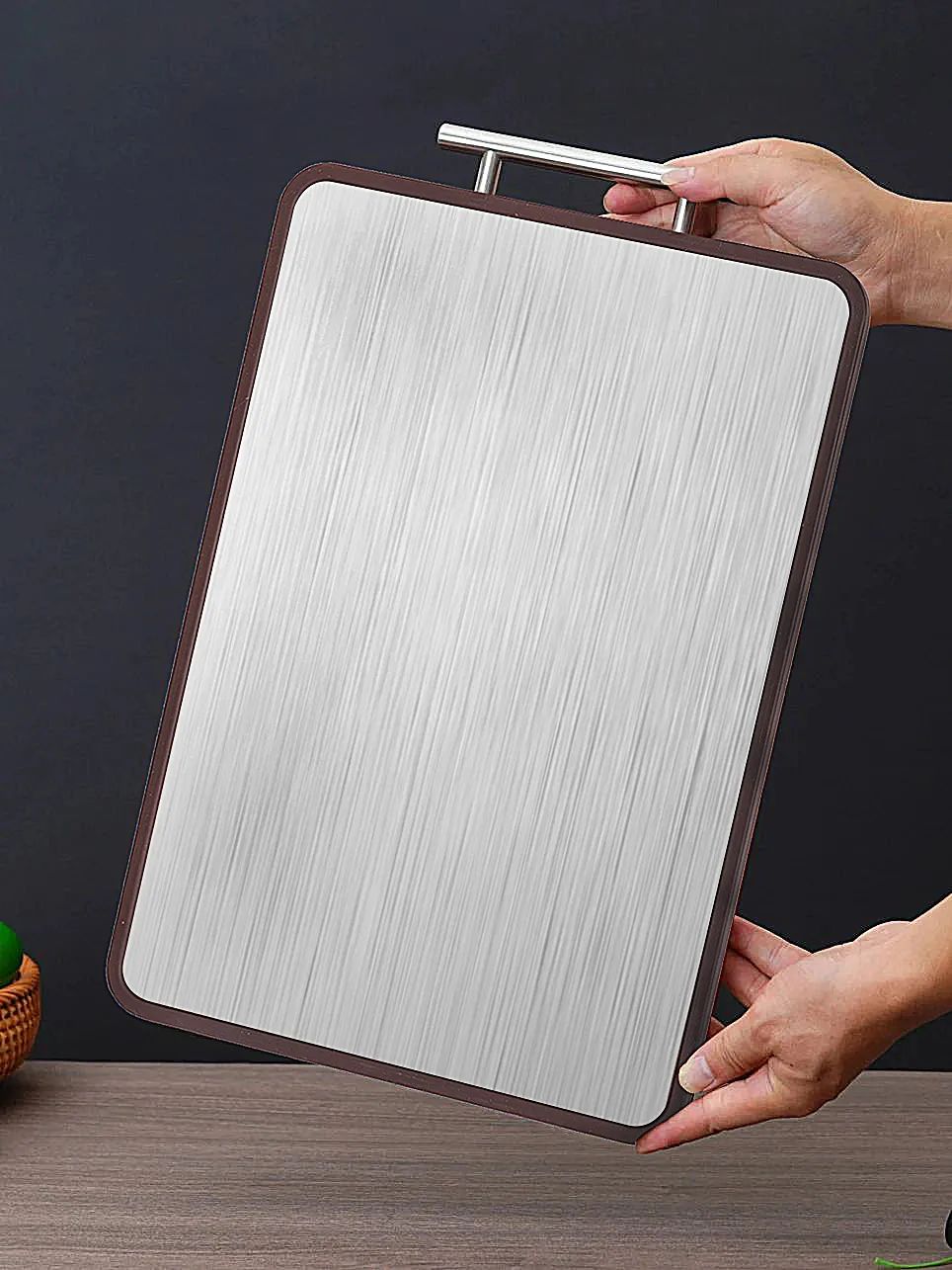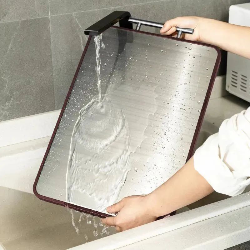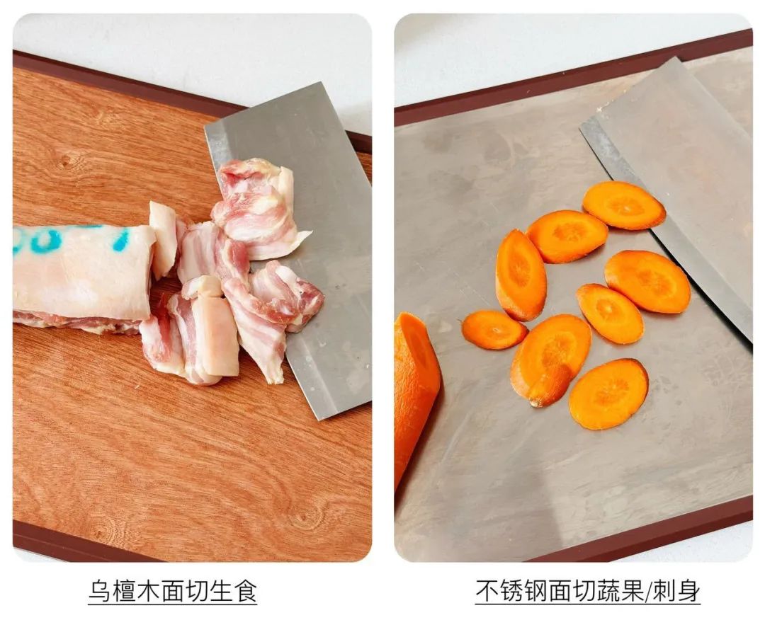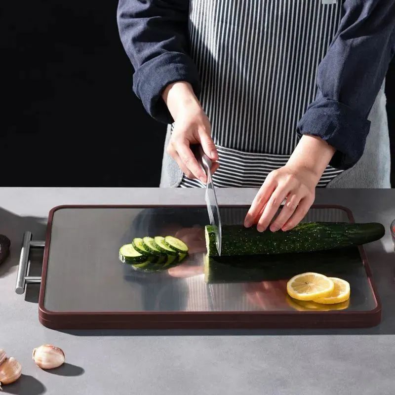 不过,不锈钢菜板太过坚硬,对刀具的伤害很大,不适合剁肉、砍骨头等操作,而且操作起来噪声太大,比较适合切熟食,瓜果、蔬菜。