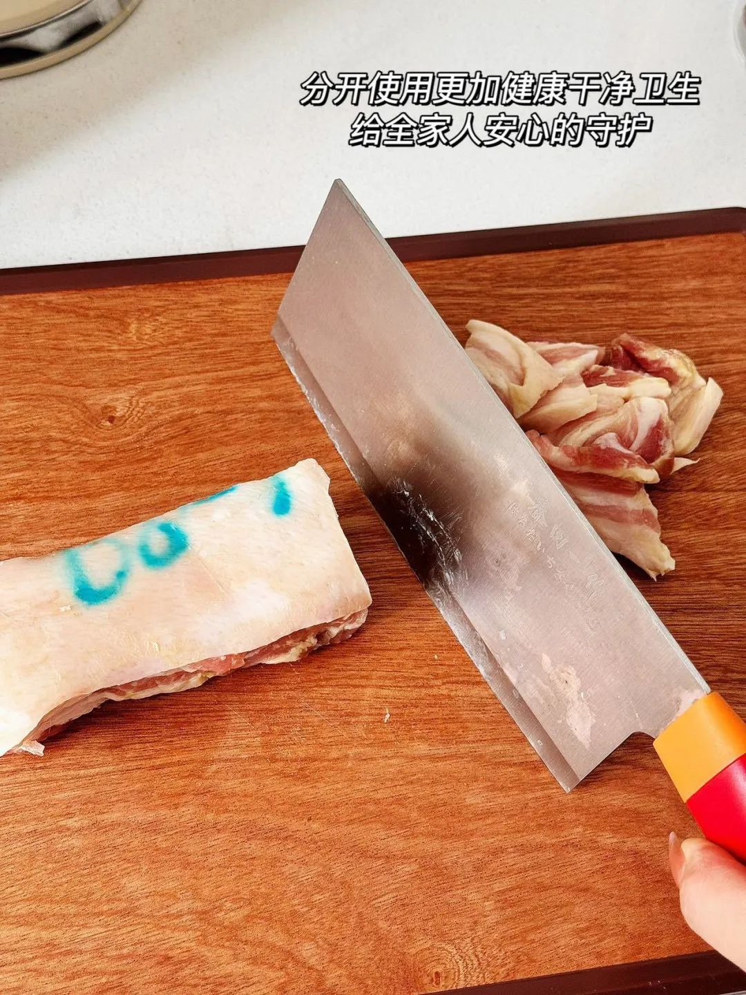 一面切肉砍骨,一面蔬果熟食,更加干净卫生、防串味