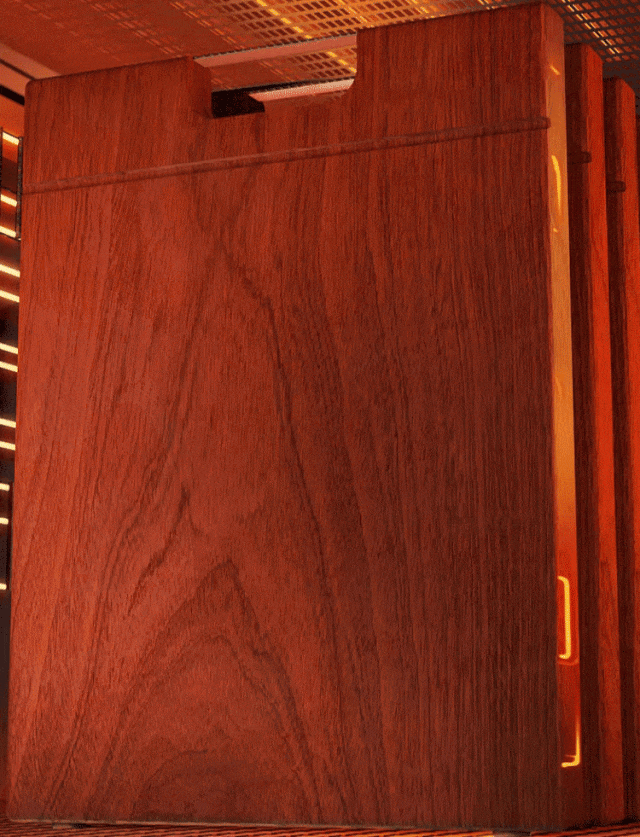 2道高温烘烤工艺制成的乌檀木面,和316不锈钢面结合在一起,再围上 360°全环绕防渗包边