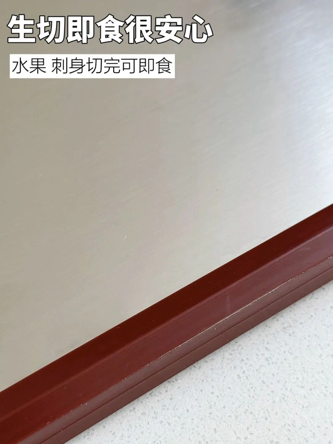 也不会像木、竹砧板,出现凹槽、裂痕,所以不会藏污纳垢,从根本上断了发霉、滋生细均的可能。