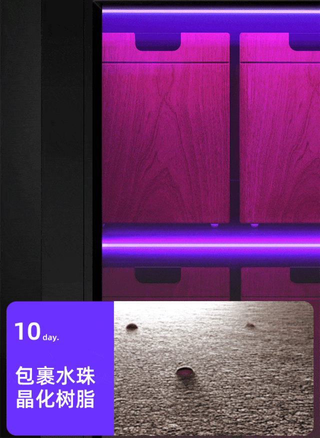 紫外线晶化:用紫外线sha菌、晶化形成水滴稳固膜,使得菜板耐用