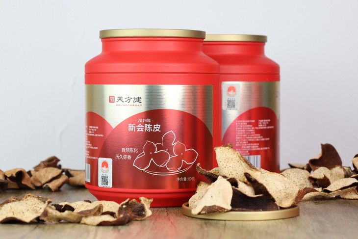 很多人买了陈皮回家,不知用什么容器储存。天方健「新会陈皮」自带铁罐,收到后将内包装袋剪开,即可取用陈皮。