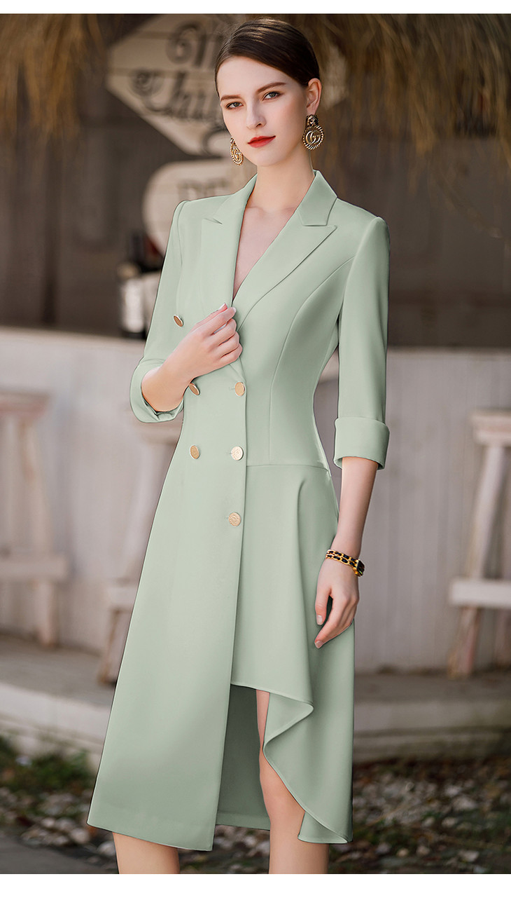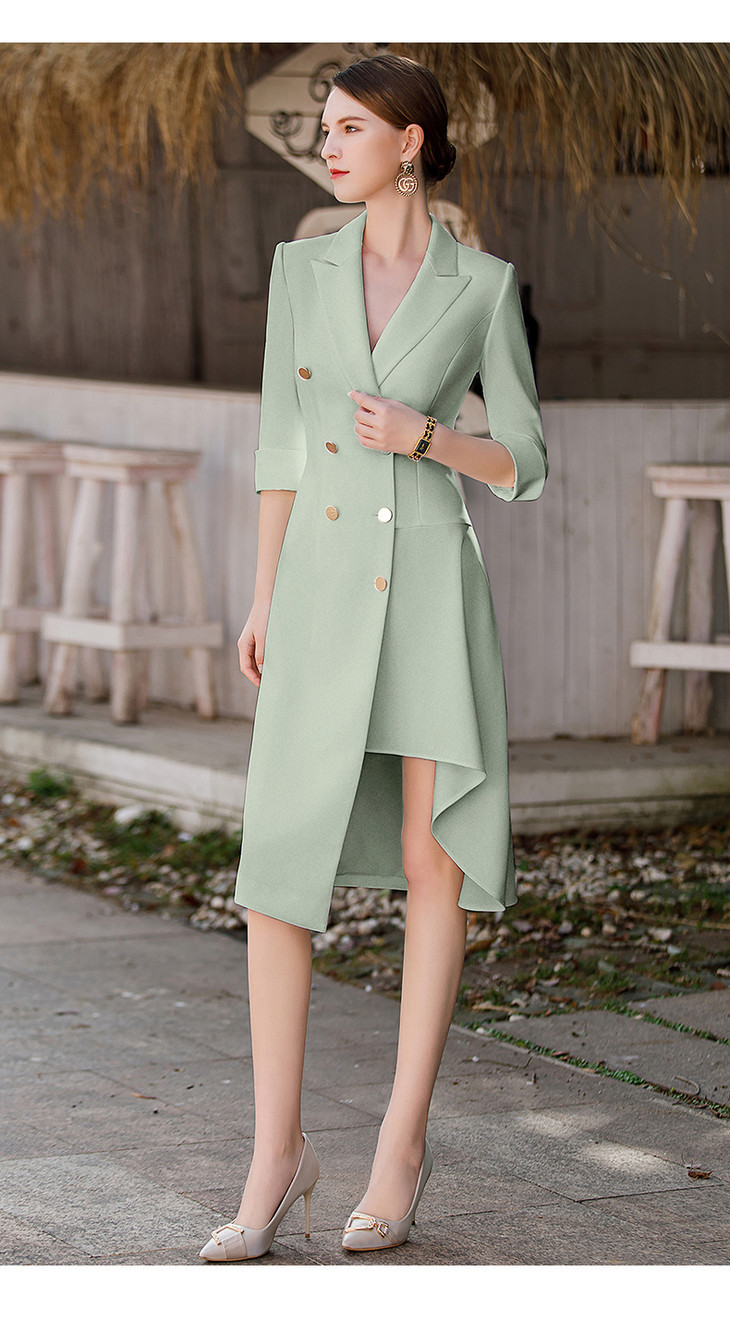 下摆单侧波浪开叉处理 勾勒出柔美线条
