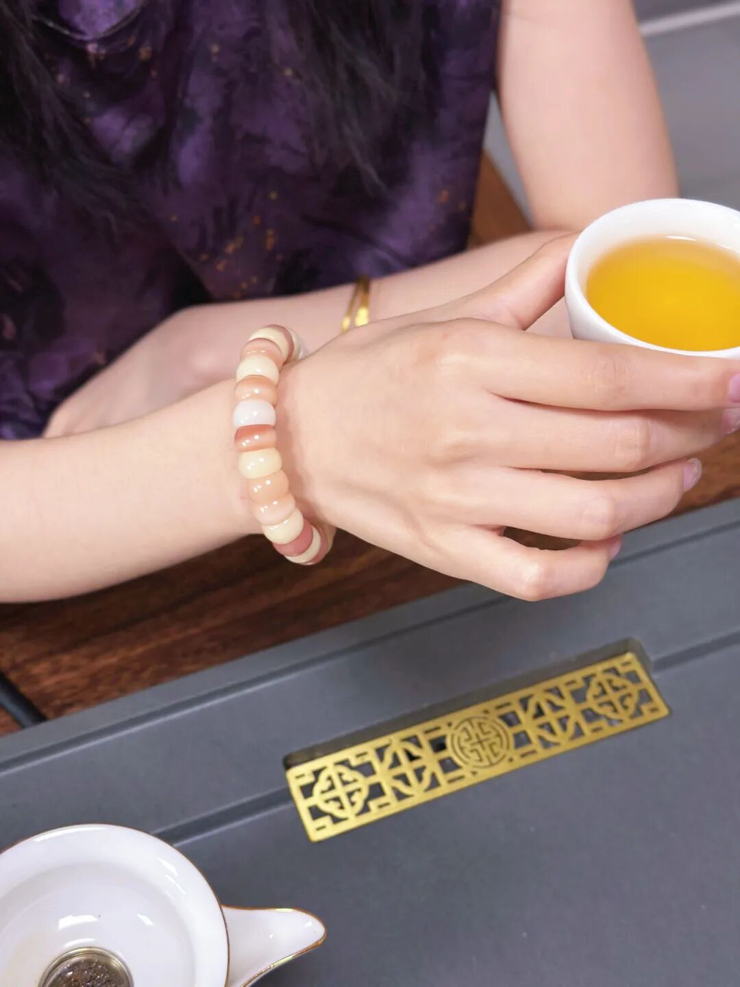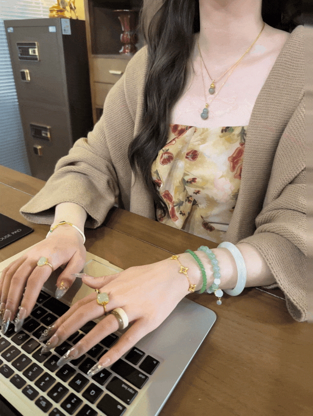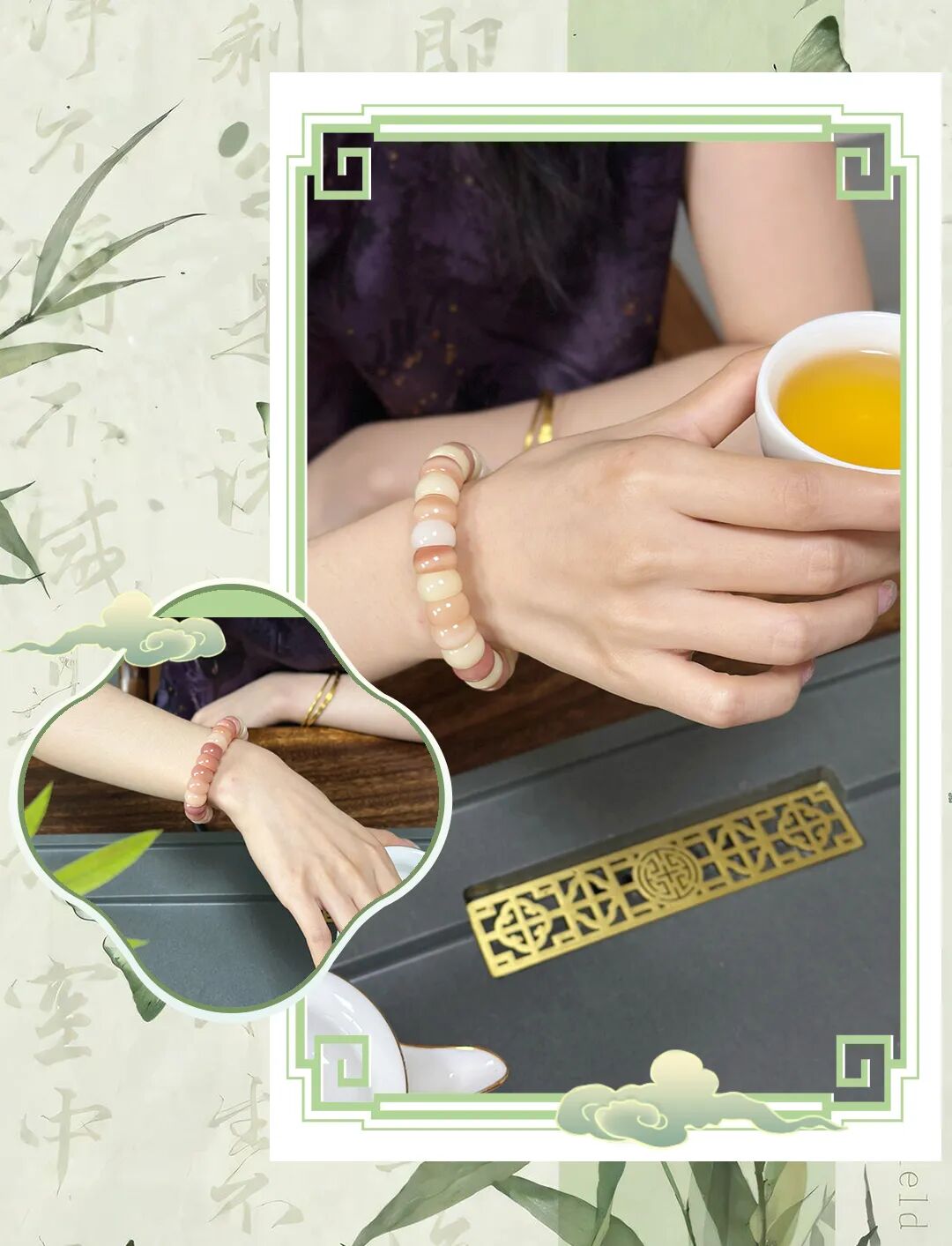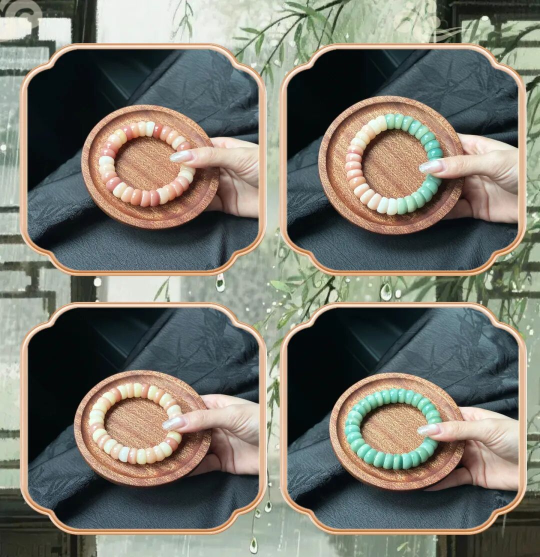戴在手腕上非常显白,色如凝脂的质感,尤其爱穿新中式的女生别错过,我老公看到还以为我又奖励自己买了几千的首饰。
