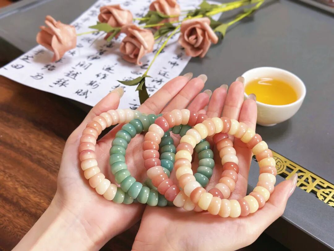 像果冻一般剔透,奶粉渐变色的菩提像是泛着光,像羊脂玉一样~