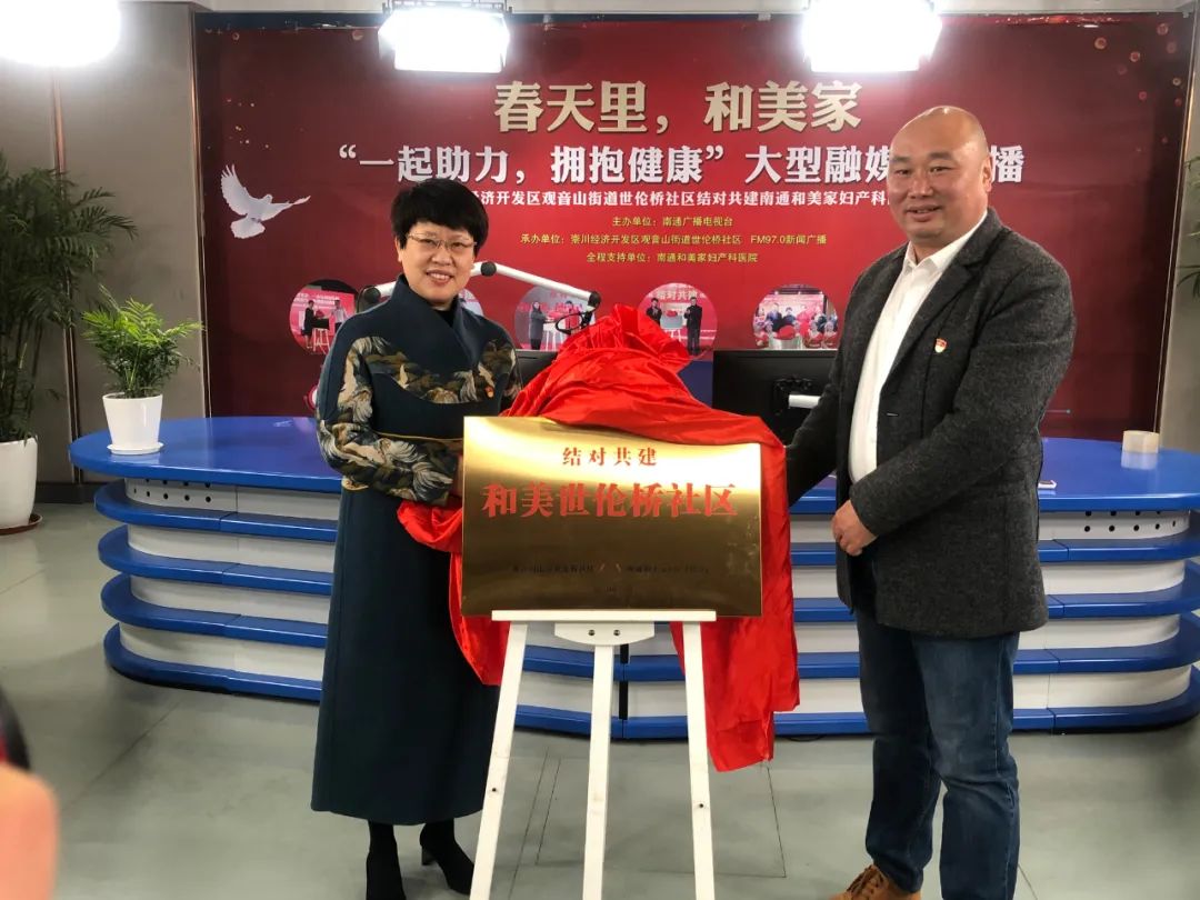 南通和美家妇产科医院常务副院长祁国群与崇川经济开发区世伦桥社区党委书记李春林共同揭牌
