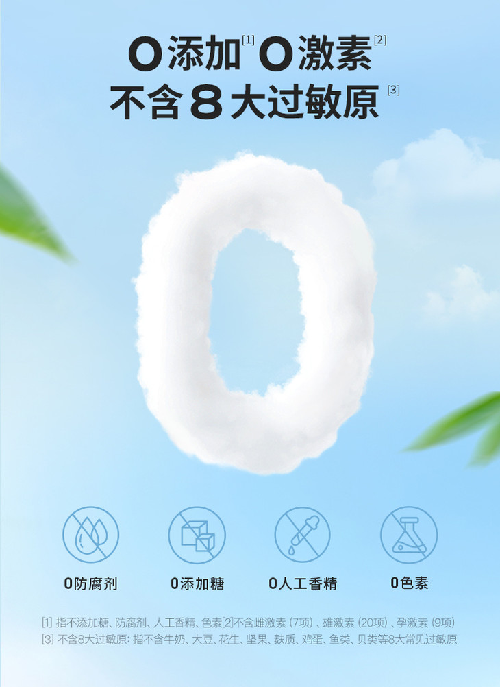 他们家主打的就是安全低敏,食物中常见的八大过敏原(牛奶、大豆、花生、坚果、麸质、鸡蛋、鱼类、贝类)这些都没有,对食物敏感的娃,也能放心吃了。