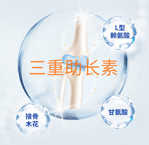 2、80mg活性赖氨酸,三重助长素,多种成长因子科学配比,多維度协作,助力成长。