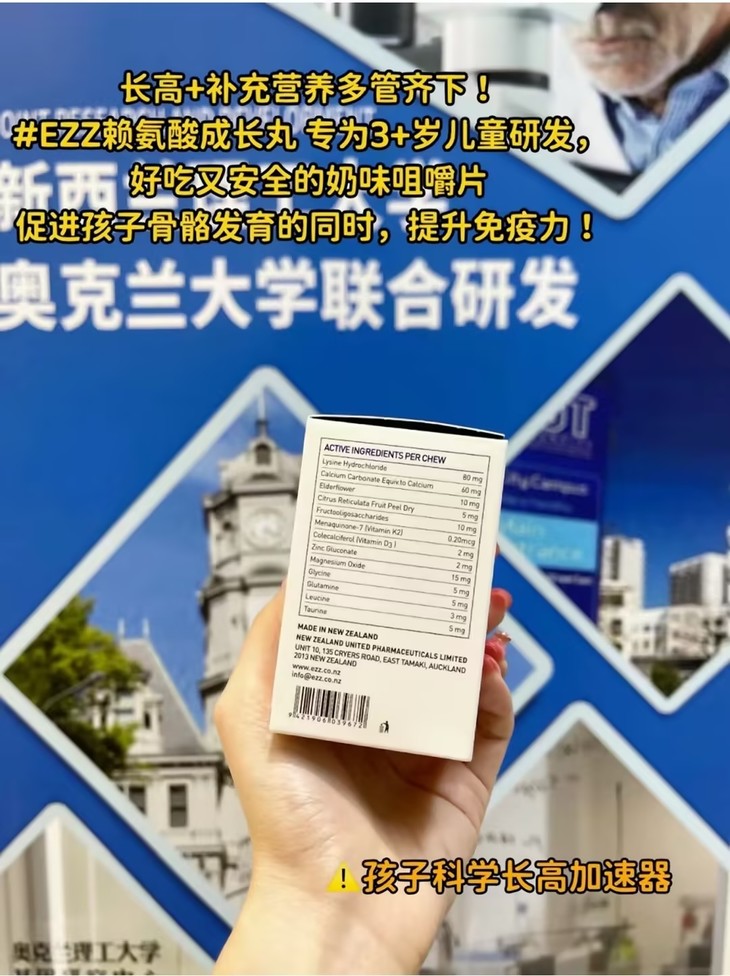 这次我给大家选的是由澳大利亚主板ASX上市公司出品,奥克兰理工大学基因研究中心和EZZ生命科学院共同研发的澳洲制造EZZ赖氨酸成长丸。