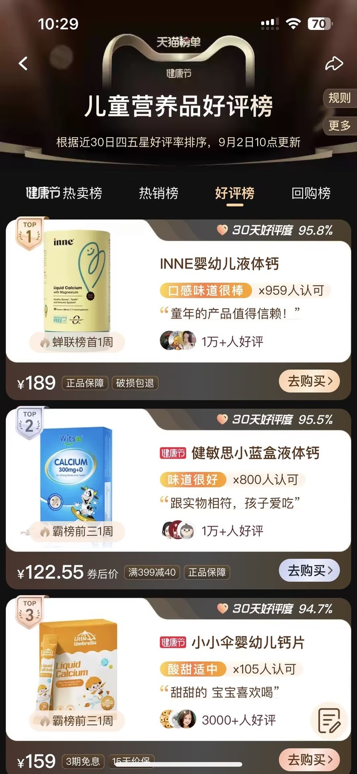 inne的钙镁锌也是长期霸榜天猫营养补剂的第一名