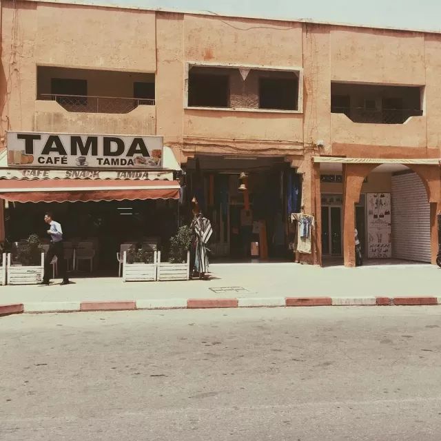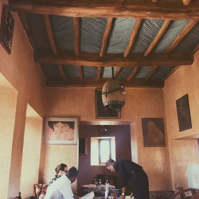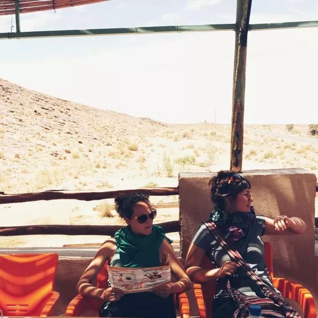 到达撒哈拉沙漠的边缘歇脚处,我们先在沙漠酒店坐着喝茶,茶加了薄荷叶和糖,很清凉。