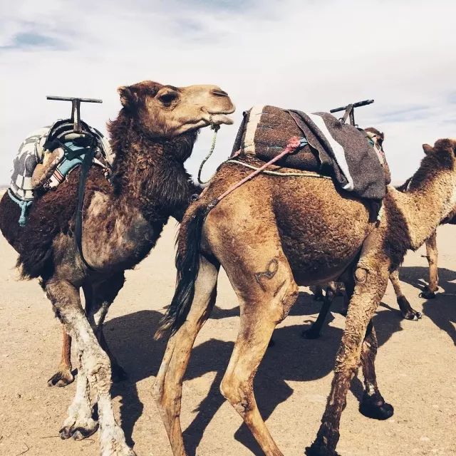 歇息后一个个骑上骆驼,开始进入撒哈拉。