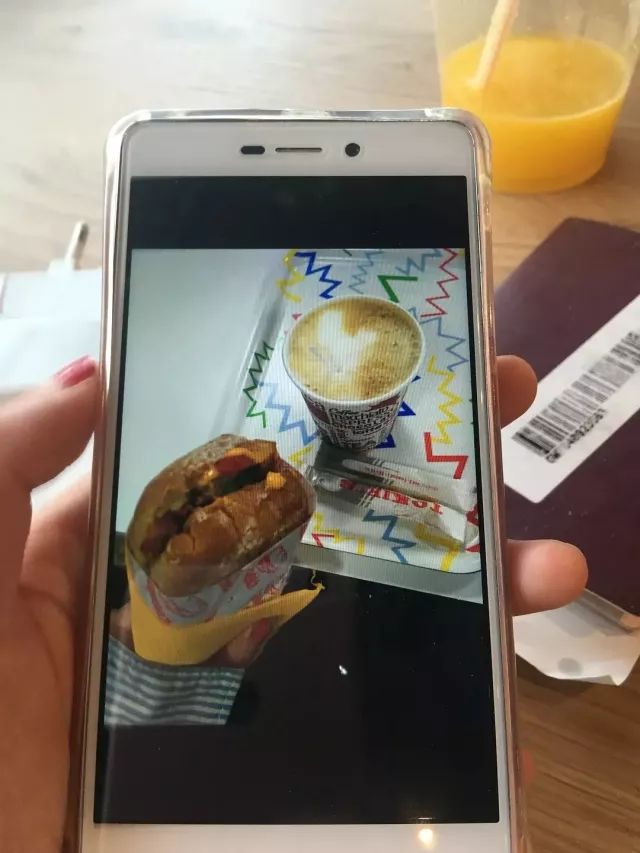 我在布鲁塞尔转机,去餐厅点了杯橙汁和披萨,买了盒巧克力和小瓶的葡萄酒。
