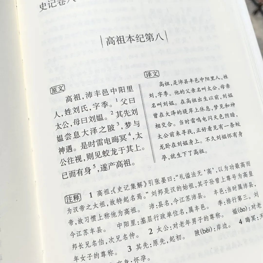 他是我国《史记》研究的泰斗人物,60多年都在研究《史记》,出版过多部史类著作。 内文排版上,原文和译文左右对照。 注释里,还对生僻字词一一注音,并引经据典,涉及的历史人物、背景、文学典故都做了延伸。 全部采用布面书封,锁线装订,180度平摊,阅读更方便。 这样一套足本无删减《史记》,不论是收藏,还是送人都是上佳之选。 成人读,以史为镜,洞悉世事人情,学习为人处世的智慧,人生格局大不一样。 孩子读,从小培养大格局、大心胸,积累历史素材典故,轻松学好大语文。 一顿火锅钱,就可收获历代帝王将相、文人骚客爱不释手的经典之作,全家受益,这笔投入太值了~ 从古至今,无数政坛精英、文化名家都对《史记》推崇备至。 曾国藩一生熟读多次,甚至将其视为传家宝,“先哲经世之书,莫善于《史记》。” 也因《史记》,他在政坛叱咤风云,其家族两百年来长盛不衰。 为什么这么多人把《史记》列为生命之书,反复读5遍10遍都不过瘾? 因为它用三千年的历史、数百个风云人物起落的一生,讲透了在中国社会生存,受用一辈子的处世智慧。 从《史记·高祖本纪》“流氓皇帝”刘邦身上,我们学到 职场的成功原则: 如何建立大局观、如何知人善任,打造独一无二的领导力。 而作为首脑之人,手里掌握了人才还不行,还要量才适用,发挥人才的主动性和求胜欲。