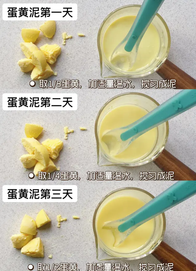 🥄1/8蛋黄 → 温水/奶调成糊