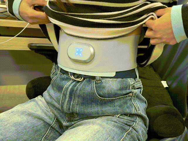 说说我的真实体验:戴上后,会感觉到一阵阵微电流,持续有节奏地刺激腰部两侧的深层肌肉。