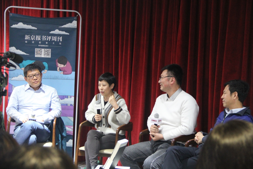活动现场,从左到右,范新(主持人)、刘瑜、张笑宇、吴国盛。