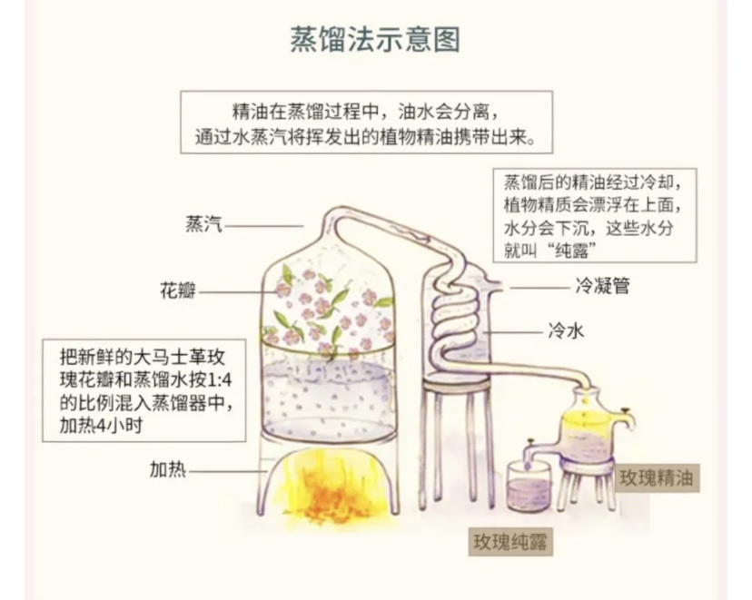 而沾着露水的玫瑰花,采摘完立刻进行萃取、加工、存储,5小时内必须要完成当日玫瑰精油的生产。
