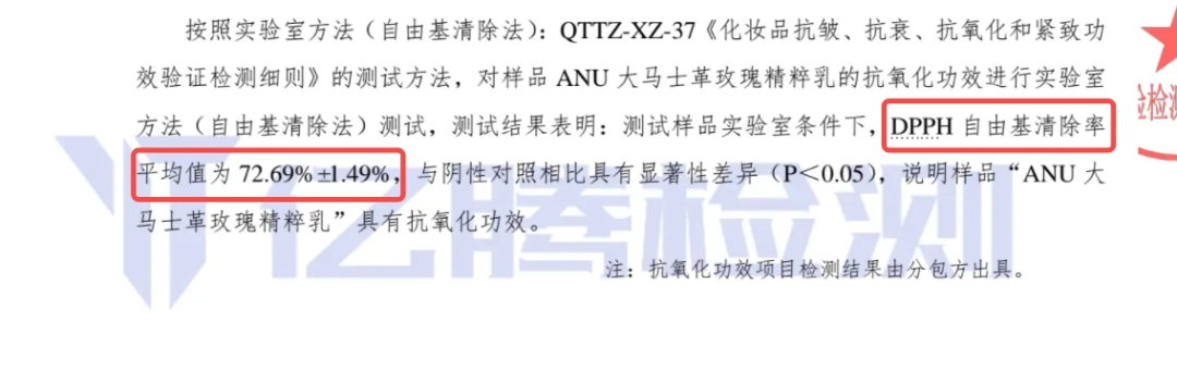 (ANU阿奴大马士革玫瑰精粹乳的实验室测自由基清除率