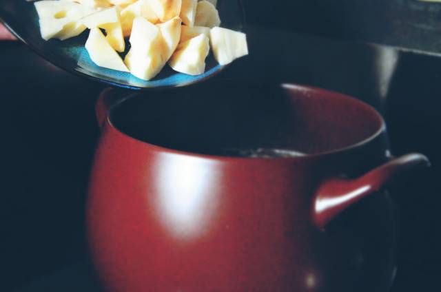 3、在制作要点的第一步,可以放入几个鲜山楂或山楂片,这样,排骨很快就炖烂了。