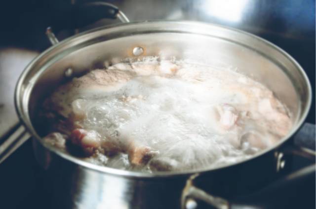 1、准备砂锅,锅内放入2/3的水,待水烧开后,放入已经焯好的排骨;