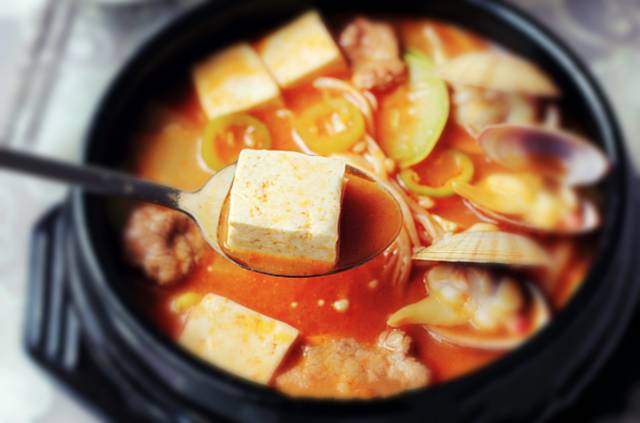 牛里脊1两,豆腐1小块,黄豆芽1两,韩式大酱1勺;