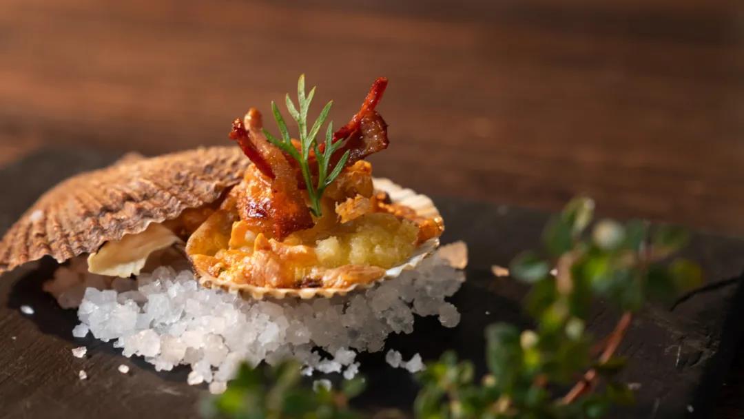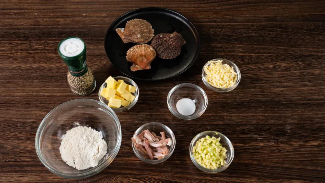 [1]处理扇贝。将扇贝壳刷干净,用小刀小心沿着壳的内壁轻轻刮开扇贝裙边,然后剥开,将内脏和贝柱清洗干净,去掉扇贝黑色的囊。