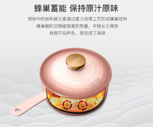 锅身也是同样做出大贡献,经过【红模铸造法】铸造的铸味锅,锅体有优秀的积蓄热量的能力,平时中小火,都能达到大火的效果。