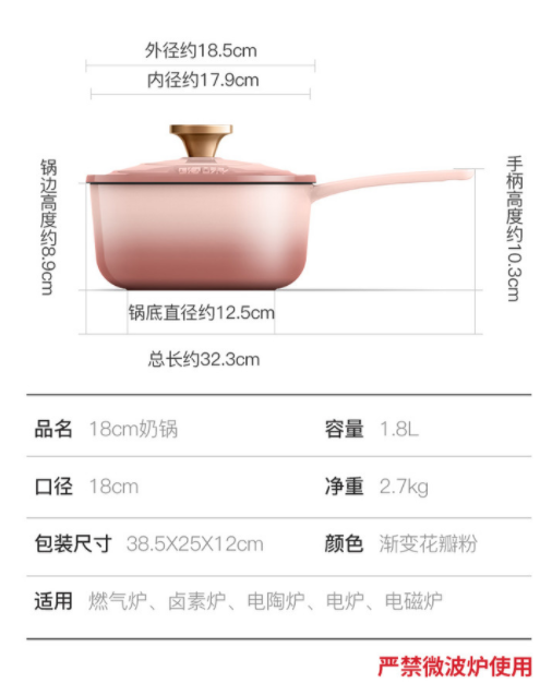 18cm的口径,宝妈妈用它来做辅食,也是很好的选择,锅子的高温锁水,能很好锁住水分。而且无涂层。吃进肚子里,放心